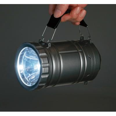 アウトドア向けのミリタリー調のデザインのLEDライトです。本体にはランタンと懐中電灯の2つのライトが搭載されており、使い方を切り替えられます。本体の側面にあるLEDライトはランタンとして使い、上部を延ばすだけで点灯します。また、取っ手を付け替えて懐中電灯としても利用可能です。名入れも可能で、アウトドアイベントや防災関連の記念品として最適です。