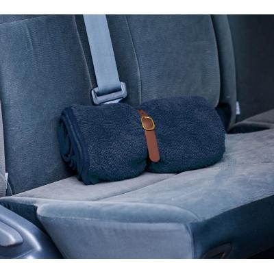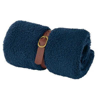 両面ボア仕様でしっかりあたたかいブランケットは、ベーシックなネイビー×ベージュの落ち着いた配色で使いやすいデザイン。付属のベルトでくるっとまとめれば、スッキリ収納できるだけでなく、枕やクッション代わりとしても活躍します。ベルト部分にはさりげなく名入れ印刷が可能ですので、ぜひご活用ください。