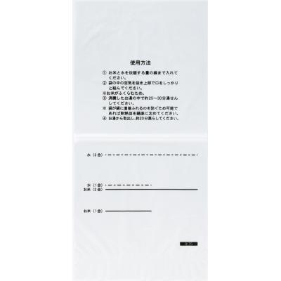 袋本体にお米と水の量の目安線が印刷されています。高密度ポリエチレン製。 ●耐熱温度:110度●耐冷温度:−30度