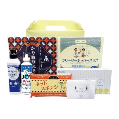 <セット内容> ・ネピア激吸収ハンドタオル100W×1 ・P&G除菌ジョイコンパクト170ml(さわやか微香)×1 ・ライオンCHARMYMagica220ml(除菌プラス)×1 ・ネピア鼻セレブポケットティシュ12W×1 ・ネットスポンジ×1 ・フリーザージッパーバッグ5枚×1 ・かや織りふきん×1 ※ネピア鼻セレブポケットティシュ12Wは2種不均等アソートになります。 |