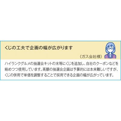1シートに同じ等数が20枚綴りになっています。 シートからくじを1枚ずつ切り離して使用します。(裏面をはがすと等賞がわかります) ※くじ、抽選箱をお申し込みの際には送料1000円(2933855)別途ご負担ください。 クロネコDM便(40シートまで)・レターパックライト/プラス(30シートまで)での発送も可能です。 |